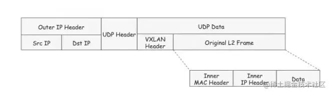 VXLAN的封包是将二层以太网帧封装到四层UDP报文中的过程。