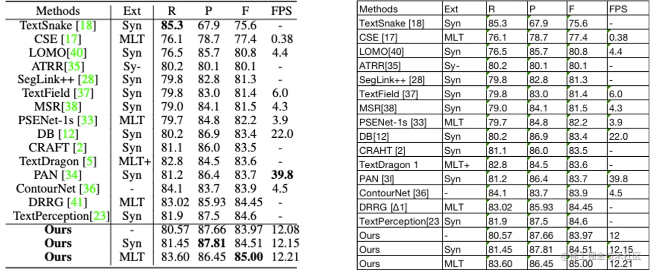 目前较为流行的文本检测算法可以大致分为基于回归和基于分割的两大类文本检测算法,也有一些算法将二者相结合。基于回归的算法借鉴通用物体检测算法,通过设定anchor回归检测框,或者直接做像素回归,这类方法对规则形状文本检测效果较好,但是对不规则形状的文本检测效果会相对差一些,比如CTPN对水平文本的检测效果较好,但对倾斜、弯曲文本的检测效果较差,SegLink对长文本比较好,但对分布稀疏的文本效果较差;基于分割的算法引入了Mask-RCNN,这类算法在各种场景、对各种形状文本的检测效果都可以达到一个更高的水平,但缺点就是后处理一般会比较复杂,因此常常存在速度问题,并且无法解决重叠文本的检测问题。