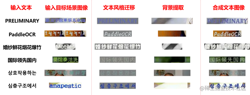 在数据工具层面,PaddleOCR提供了半自动数据标注工具PPOCRLabel和数据合成工具Style-Text,助力开发者更方便的生产模型训练所需的数据集和标注信息。PPOCRLabel作为业界首个开源的半自动OCR数据标注工具,针对标注过程枯燥繁琐、机械性高,大量训练数据所需人工标记,时间金钱成本昂贵的问题,内置PP-OCR模型实现预标注+人工校验的标注模式,可以极大提升标注效率,节省人力成本。数据合成工具Style-Text主要解决实际场景真实数据严重不足,传统合成算法无法合成文字风格(字体、颜色、间距、背景)的问题,只需要少许目标场景图像,就可以批量合成大量与目标场景风格相近的文本图像。