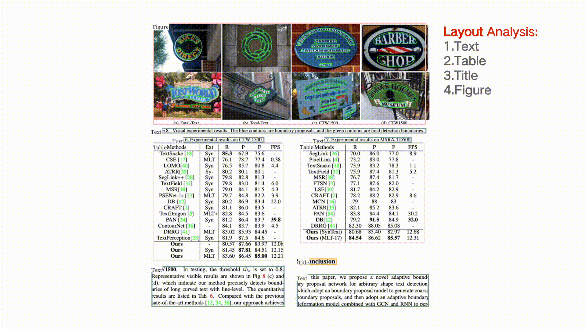 - 支持对图片形式的文档进行版面分析,可以划分文字、标题、表格、图片以及列表5类区域(与Layout-Parser联合使用)