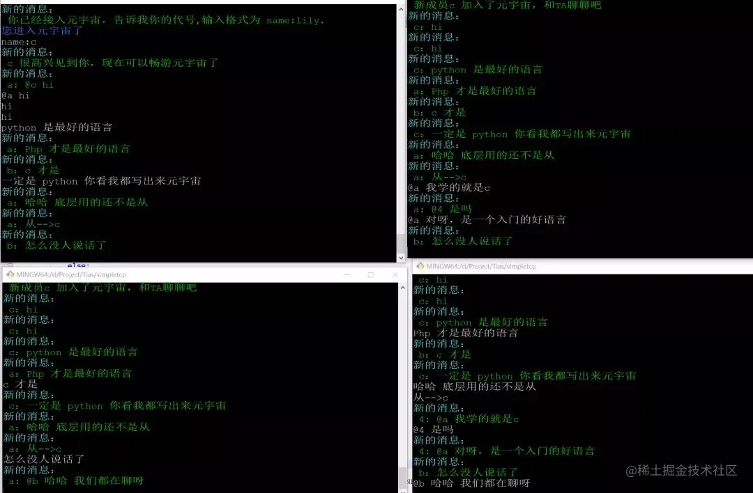 今天我们用基础的 TCP 技术,构建了一个自己的元宇宙聊天室,虽然功能上和想象中的元宇宙相去甚远,不过其中的主要功能已经成形了。