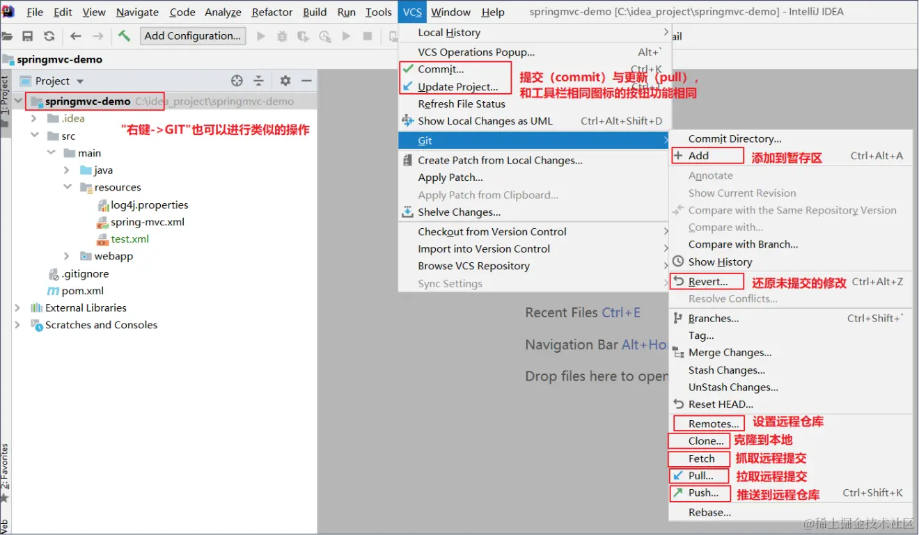 IDEA操作git的入口:
