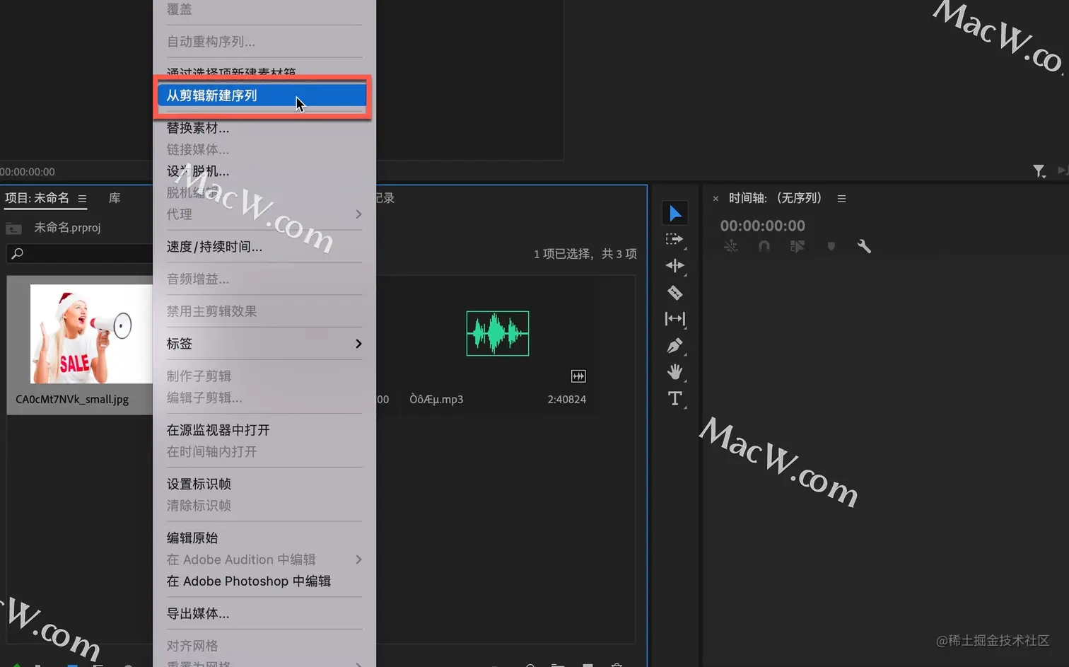 将所需的素材拖入到premiere中,在人物素材图片上右键单击-从剪辑新建序列