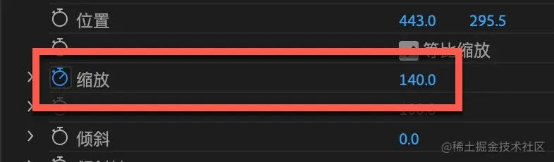 继续将时间线向后移动6帧,将缩放的参数调整为140%