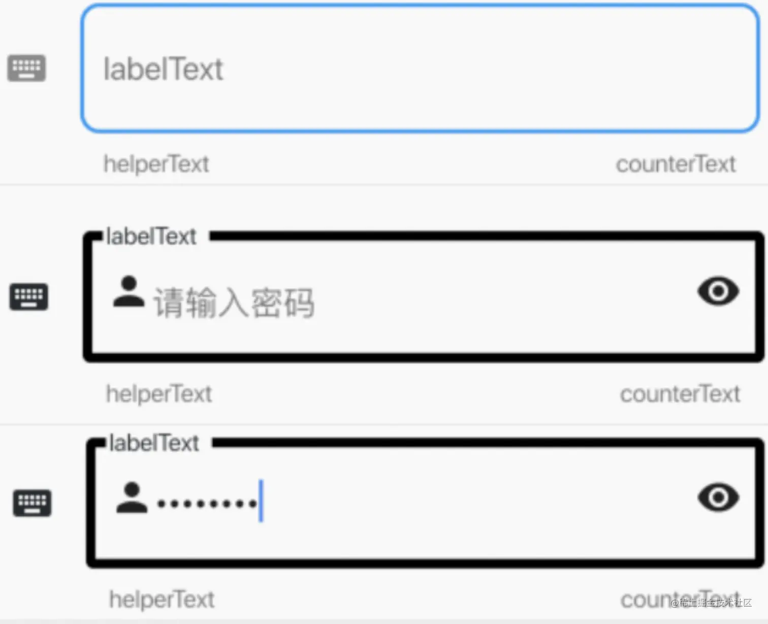 所以可以看到 InputDecorator 有很丰富的参数和配置,开发者可以通过 InputDecoration 来配置很丰富的输入框 UI 效果,但是如果刚好出现某些位置,或者某些缝隙不满足产品诡异的需求时,那恭喜你,你开启了 Flutter 高级开发的修炼之路。