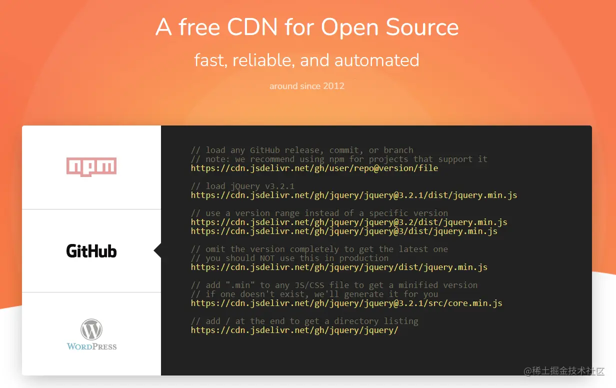放在 Github 的资源在国内加载速度比较慢,因此需要使用 CDN 加速来优化网站打开速度,jsDelivr + Github 便是免费且好用的 CDN,非常适合博客网站使用。