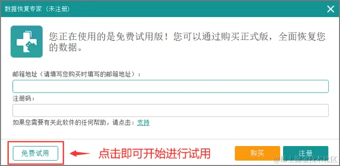 2,安装完成双击软件图标打开它,打开之后会弹出一个注册的窗口,我们点击“免费试用”就OK了!然后进入主界面;