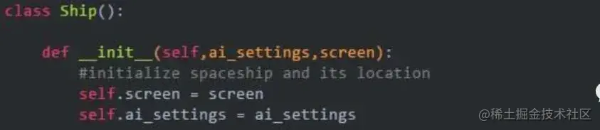 这个移动属性是飞船属性的一种,我们用ship类来控制,因此我们给这个类增加一个属性名称叫,moving_right以及一个update()方法来检测标志moving_right的状态。