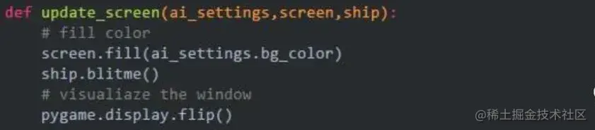 将更新屏幕的代码移到一个名为update_screen()函数中,并将这个函数放在模块game_functions中: