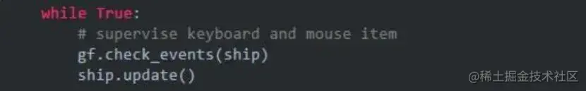 子弹击中外星人时,需要立马知道,并同时使被碰撞的外星人立即消失,因此我们需要在更新子弹的位置后立即检测碰撞。