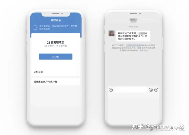 最后,需重点提及的是企微的离职继承功能。管理员可将离职导购的用户和用户群分配给其他在职导购继续跟进,进一步降低了导购离职对企业用户资源的影响,避免因员工离职而造成企业用户流失。