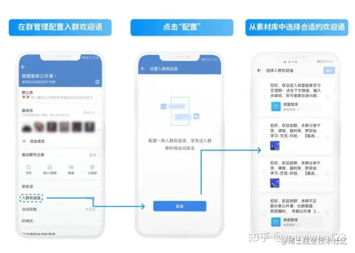 在复购提效上, 导购可创建包含微信用户的企微社群,用于日常运营、社区团购、会员管理和福利发放等场景。企业微信也提供了非常完善的工具,例如:人满自动建群、自动群发消息、防骚扰和广告等,管理员可针对不同用户群设置不同的欢迎语,用户进群后实现自动发送;也可将用户引导添加至不同社群,进行有针对性的分层管理。通过多维度的社群内容,提升社群活跃度,进而帮助企业构建从引流获客、到建群沉淀,再到深度运营的用户管理全链路。