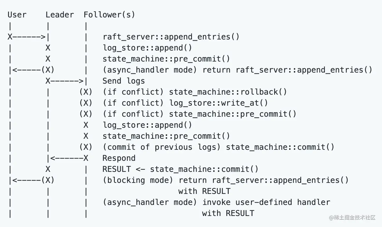 - Nuraft 库的 normal log replication 处理流程如下图: