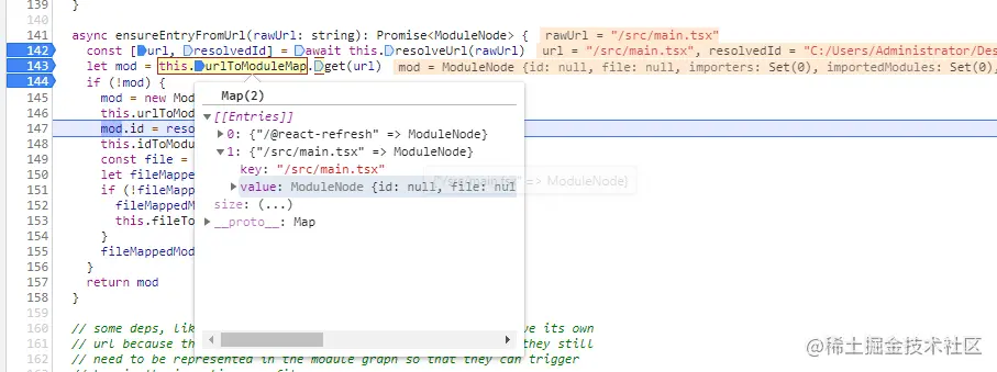 moduleGraph模块还未赋值,通过ensureEntryFromUrl方法进行Map.set