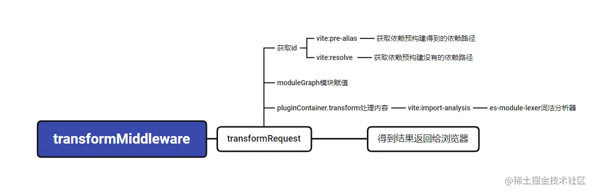 vite transformMiddleware中间件的一个核心方法 transformRequest 处理请求内容,并将结果发送至浏览器。