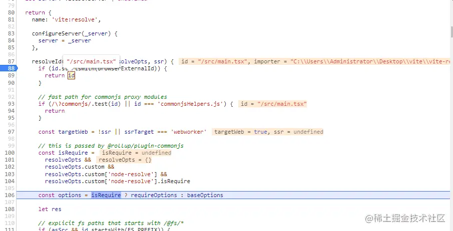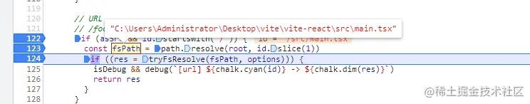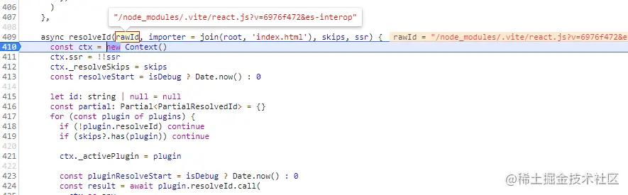 (遍历配置里面得plugins,找到vite:reslove),path得模块加上原来得root根路径直接获取到对应得路径即id,可以看出来这个插件是处理依赖预构建其外的import引入