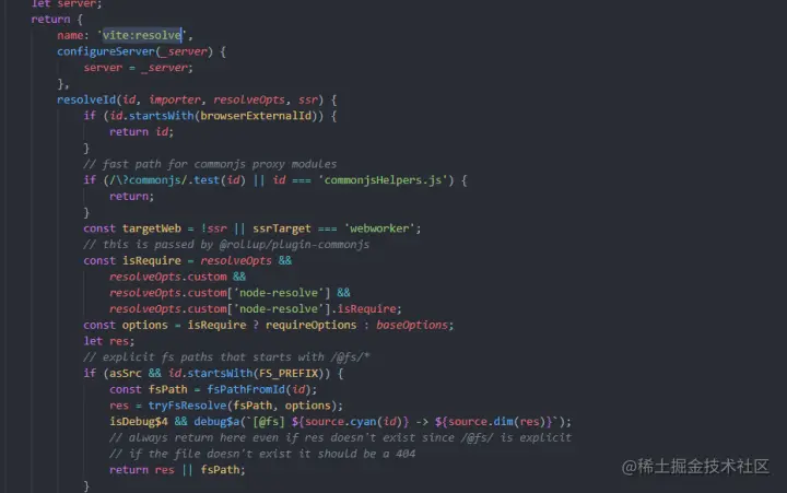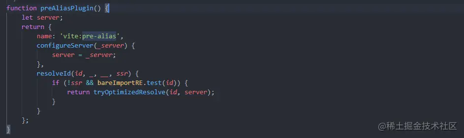 插件遍历的时候,有!plugin.resolveId条件,筛选出vite:pre-alias和vite:resolve插件,继续分析下这两个插件的作用