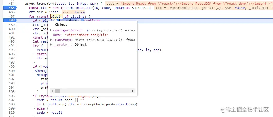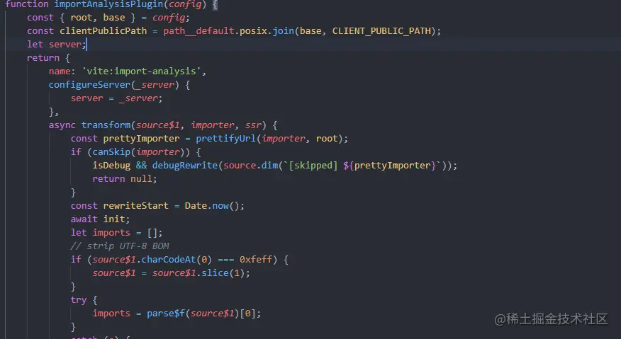 通过!Plugin.tarnsform筛选出vite:import-analysis插件