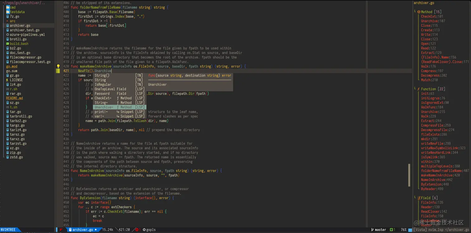 这是我最常用的工具,我会用它写 TypeScript 或者 go。我个人非常主观地喜欢 Neovim 超过 Vim,因为它现在内置了 Language Server,能用 lua 写各种插件或者命令。虽然 Vim 有着很陡峭的学习曲线,但是在上手后,你可以甩开鼠标,快速专注于编码。