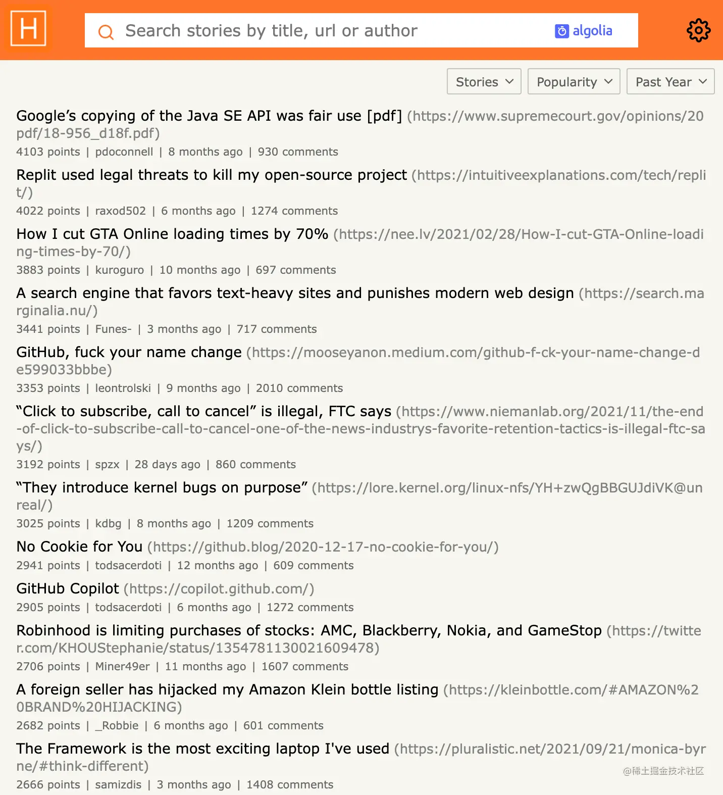 可以了解业内前沿的技术,推荐通过 HN Search powered by Algolia 快速或者搜索热点内容。