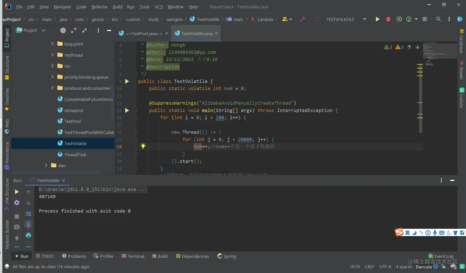 public static volatile AtomicInteger num = new AtomicInteger();