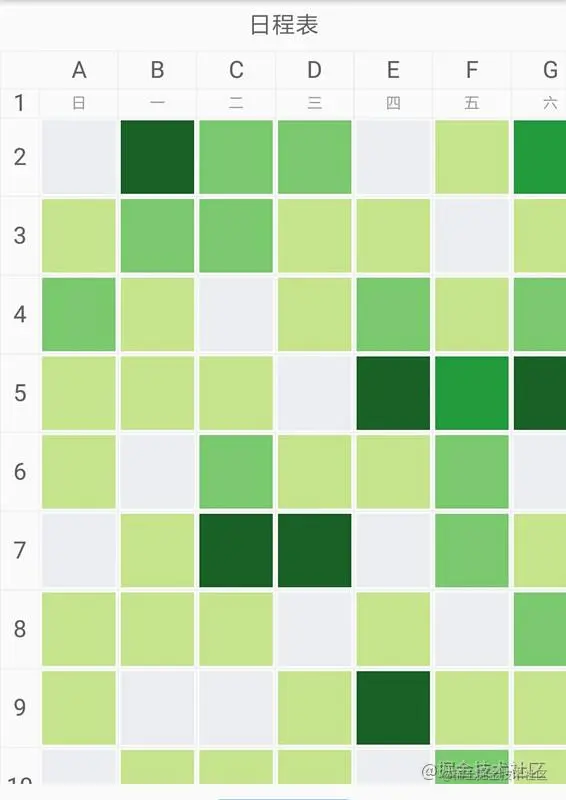 ArrayTableData<Integer> tableData = ArrayTableData.create("日程表",week,infos,new IDrawFormat<Integer>(){