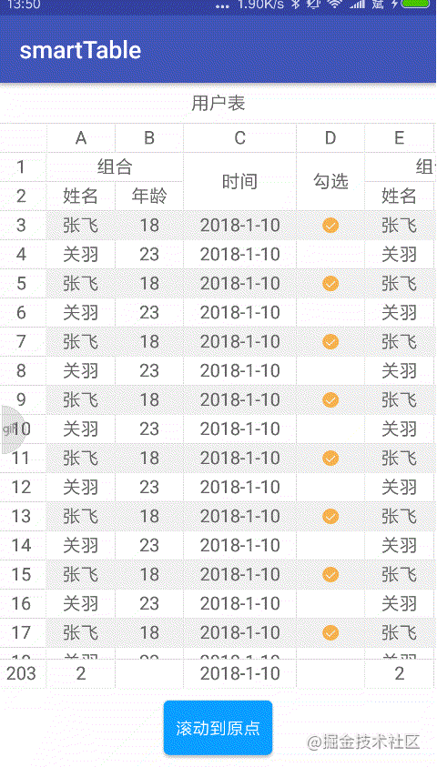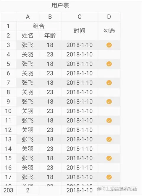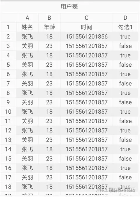 TableData<UserInfo> tableData = new TableData<>("用户表",userInfos,groupColumn,timeColumn,checkColumn);