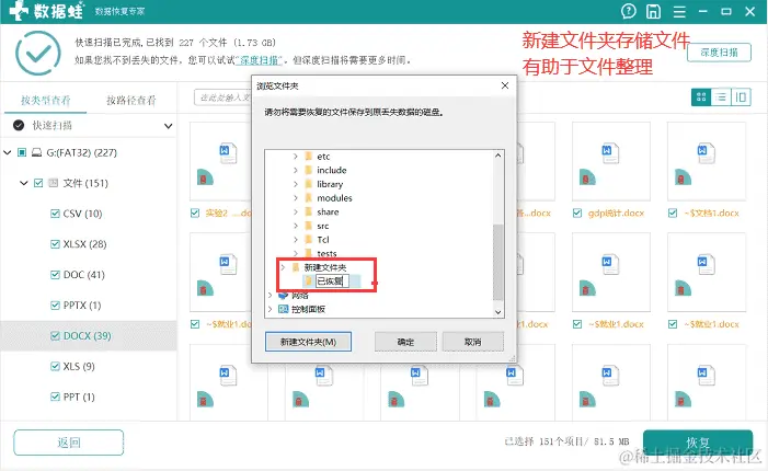 步骤三:软件结束了对内存卡的快速扫描和深度扫描,并且完成了对于数据文件的预览之后,就可以勾选想要恢复的视频文件进行恢复了。