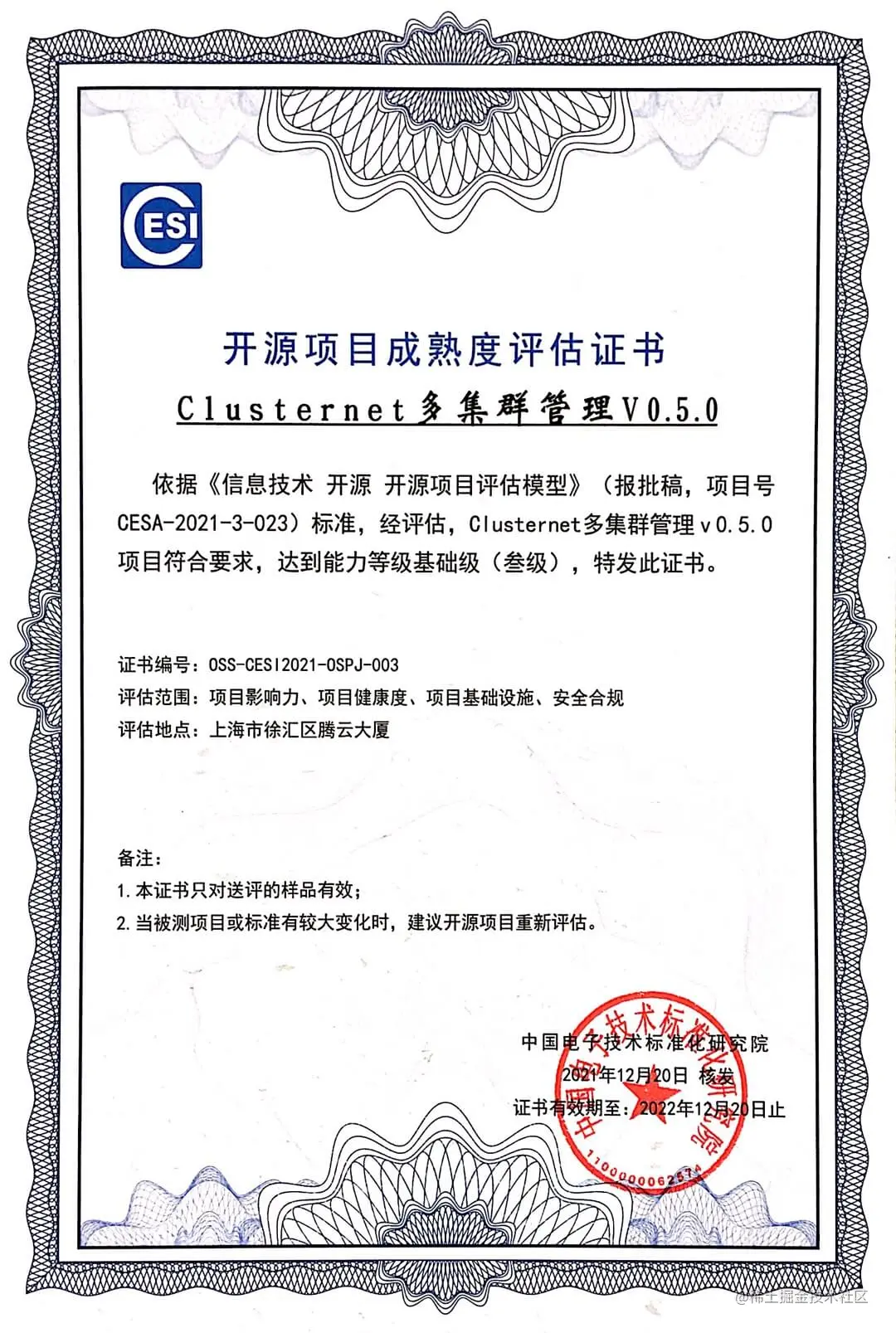 Clusternet 作为首批项目参与了《信息技术 开源 开源项目评估模型参考架构》测评,并成为通过评估的四个项目之一。《信息技术 开源 开源项目评估模型参考架构》由国防科技大学牵头,工信部电子标准院归口并组织举办多次专家研讨会,来自华东师范大学、腾讯、华为、阿里、百度、Intel、开放原子开源基金会、Linux 基金会、OpenInfra 基金会、Apache 基金会、蚂蚁集团、CSDN、滴滴、开源社、鹏城实验室、浪潮信息等企业和组织的专家积极参与讨论,为标准的制定做出重要贡献。