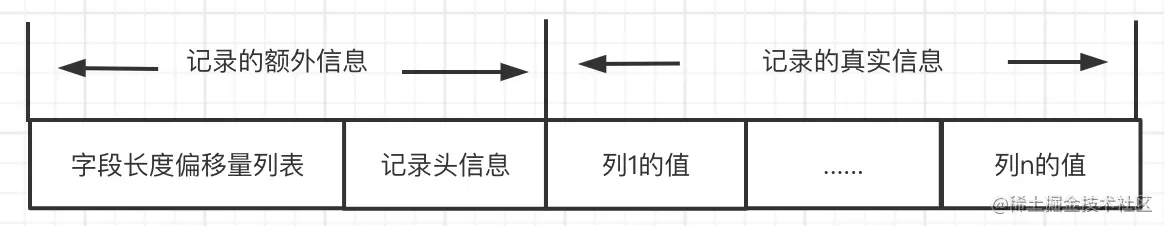 会采用16进制按照字段的逆序存入列表中,通过偏移量计算列值的长度。举个例子,列1 长度为1,列2长度为3,列3长度为4,则列表展示为4 、7、8,每一列偏移量的第一位作为null的标志。