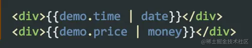 在后端同学没有返回适合显示的数据或者不方便处理数据时,可以在前端使用过滤器处理,上述对时间和金额进行处理,使用 | 作为管道符,传递参数进行序列化。date 的过滤写法可参考 date.js 。