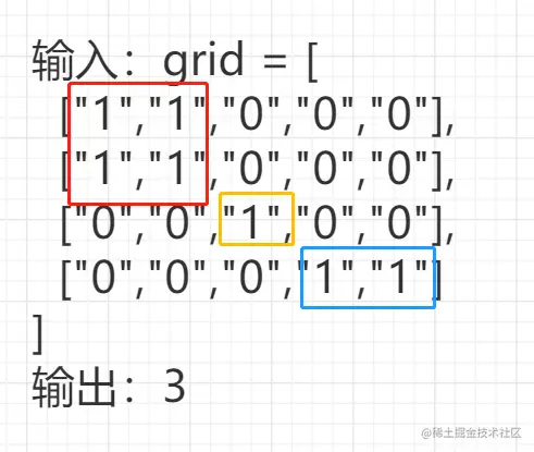 示例1:红色标志的为一个岛屿