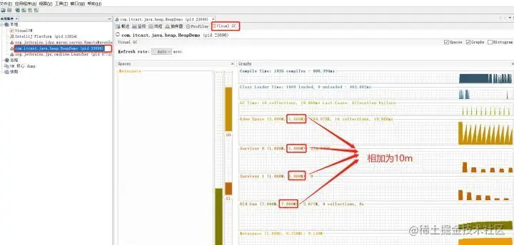 -Xms10m用于表示堆区的起始内存为10m,等价于-XX:InitialHeapSize;