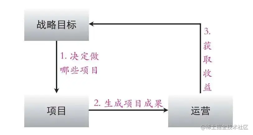 项目和运营都是实现战略目标的手段,三者的关系可参考下图: