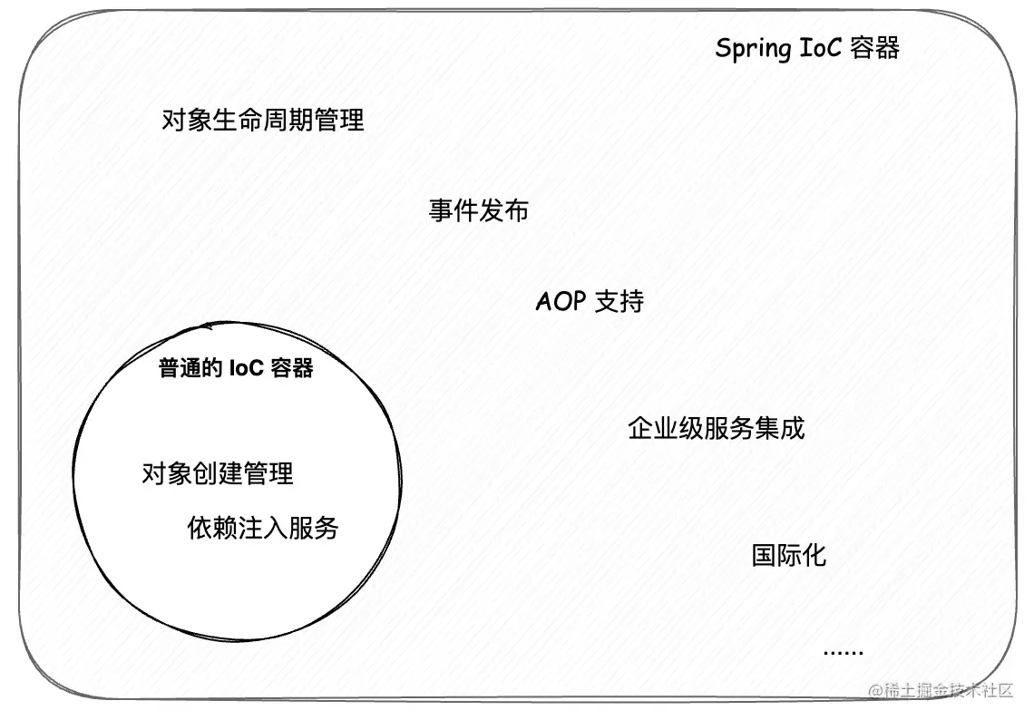 Spring IoC 容器相较于普通 IoC 容器的区别:
