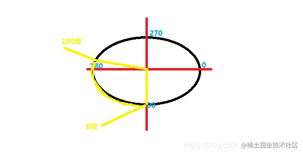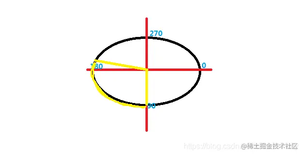 以这张图为例 ,startAngle的角度是从x轴的右侧开始为0度, 也就是说 ,当我们给定startAngle角度为90度时,那么他就是从图上90度的地方开始画 。