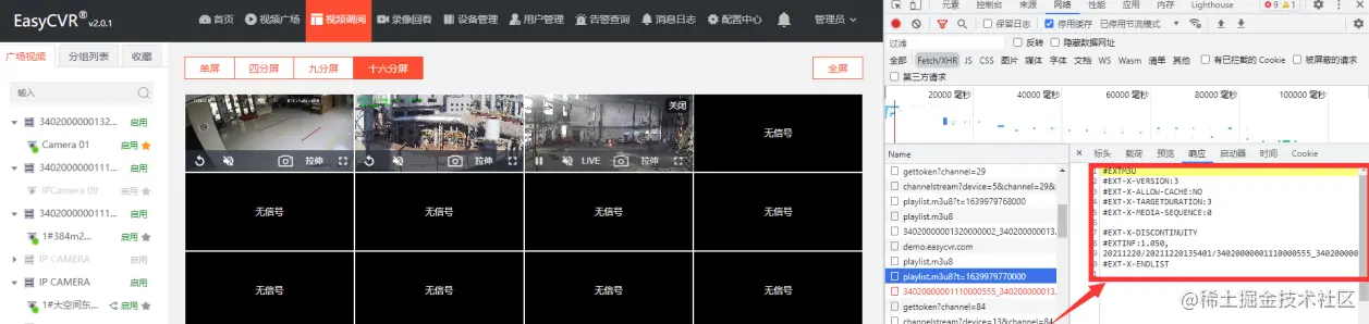 打开控制台发现,请求的hls地址内容中出现了 #ext-x-endlist 标识字段,#ext-x-endlist 是指这段视频已经结束。