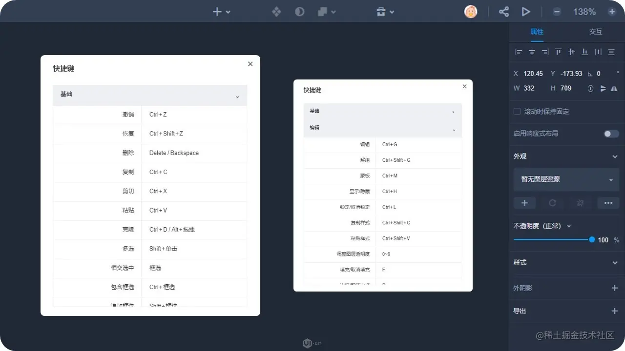 首先是布局部分,摹客DT并未区别当下热门工具,对于习惯了PS、XD、Sketch的用户来说,打开软件的那一刻,你就能快速Get到,自带的一套快捷键也有助于你快速上手。