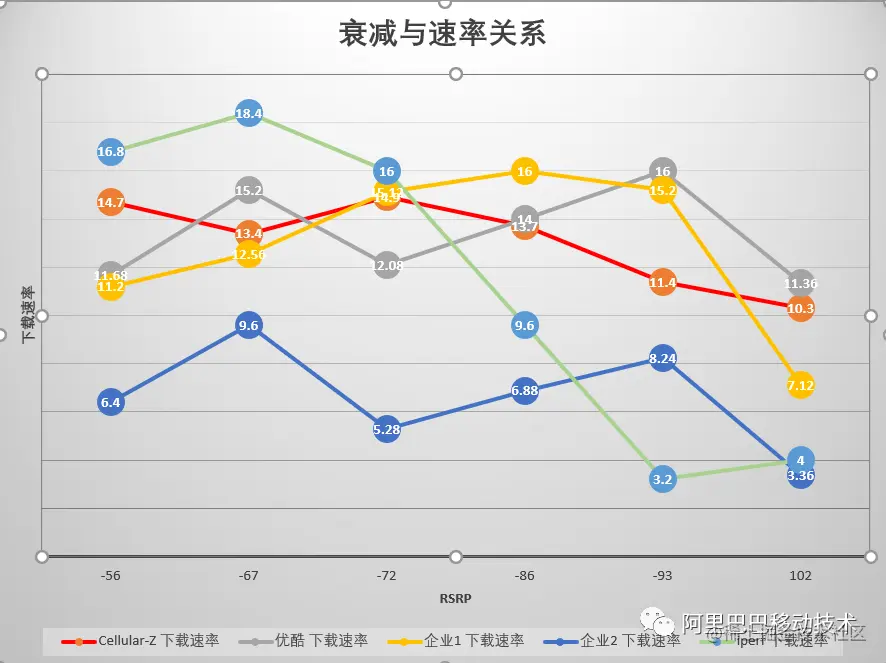 下图为:在不同信号衰减情况下,下载速率的一些关系图: