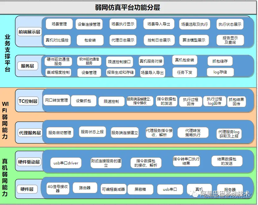 - 底层物理层采用真机及屏蔽箱模式,可以直接对屏蔽箱的真机进行弱网信号控制;