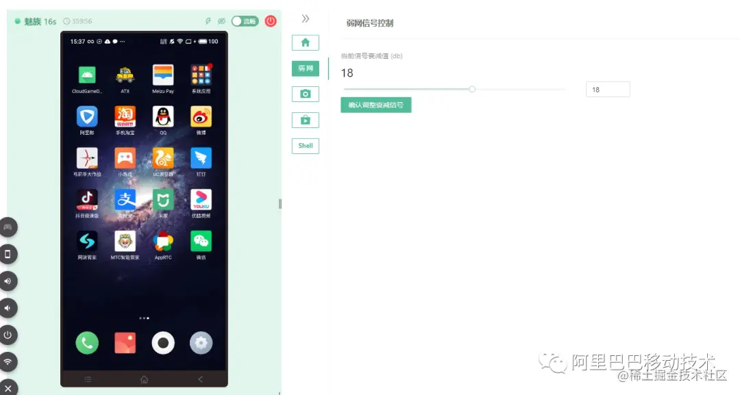 4G信号和WIFI信号,不同的信号源有天然的区别,因此在4G网络情况下进行弱网测试,所需要的环境更为复杂,需要专门的屏蔽室,所需要的成本更高,优酷弱网平台采用屏蔽柜+真机平台+衰减器方式提供真实的弱网场景,用户在真机平台上可以一键用户真实的进行弱网模拟。