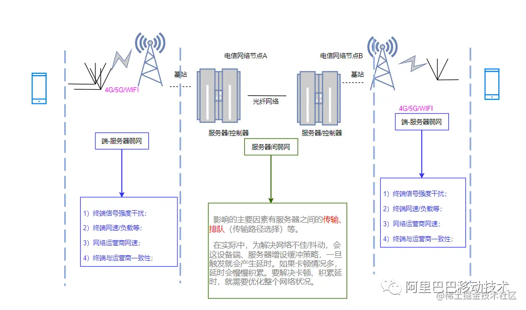 根据用户的实际场景,造成弱网的原因一般有两种: