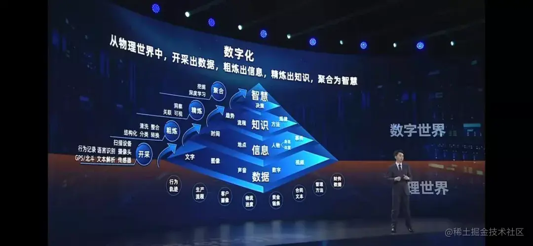 数字化转型就是从物理世界中,开采出数据、粗炼出信息、精炼出知识、聚合为智慧的过程,这个过程始于数据的开采,终于聚合的智慧。实际上,很多企业和专家基于数字化转型首先研究的是知识层面,却忽略了最基本的数据采集。数据的采集出了问题,信息就不可能准确,提炼出来的知识也就没有价值,最后得出的智慧就是一场华丽的闹剧。
