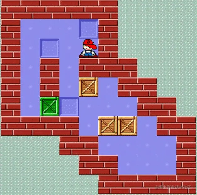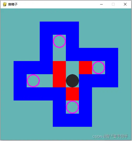 箱子全部推到预设坐标上就算赢。 道路蜿蜒曲折,一不留神就会把自己的路线堵死。 其间需要观
