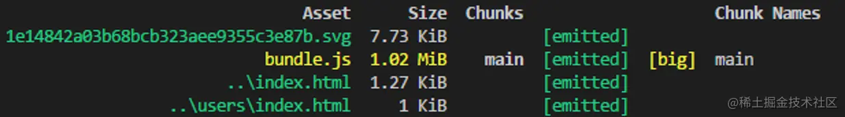 性能结果和webpack结合加入构建过程。在构建步骤之后,webpack 输出资产及其大小的颜色编码列表。任何超出预算的都以黄色突出显示。