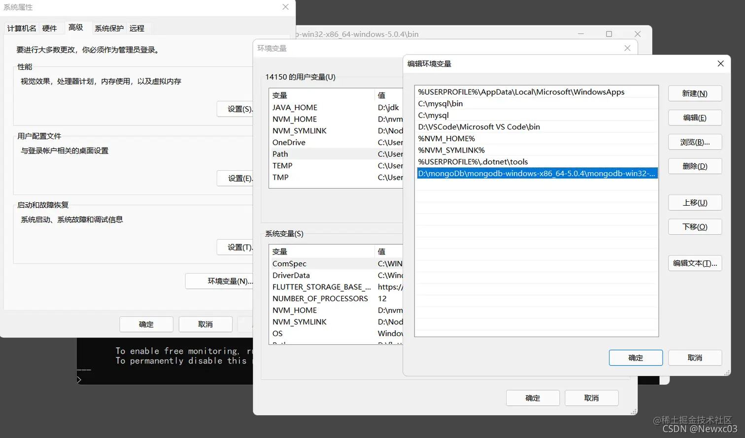 环境变量中加的路径是mongodb里bin目录的路径