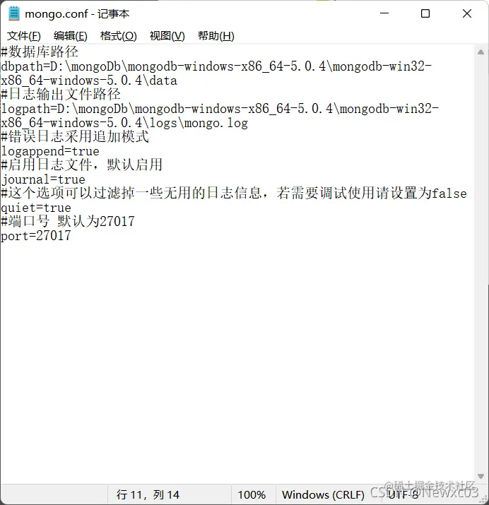 mongo.conf里是这样的 自己根据自己的路径修改一下