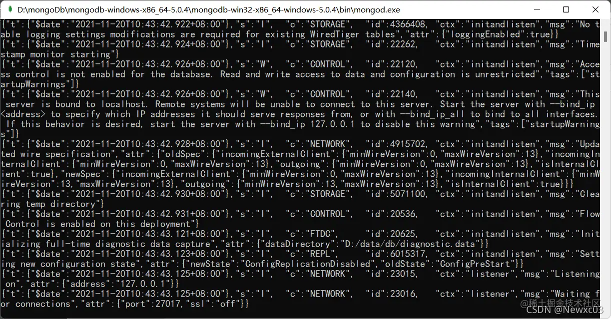 点击mongod.exe 弹出以下内容则代表成功
