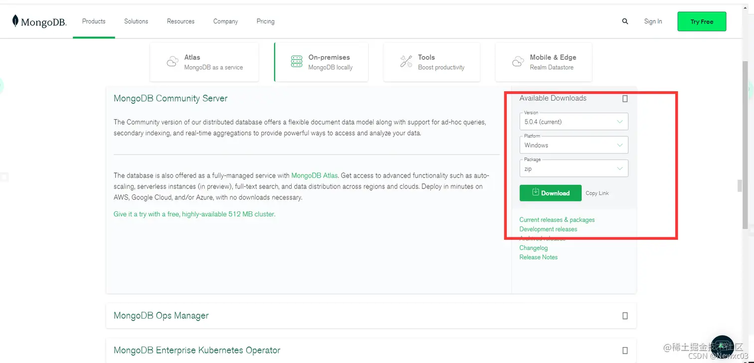首先进入MongoDB的官网