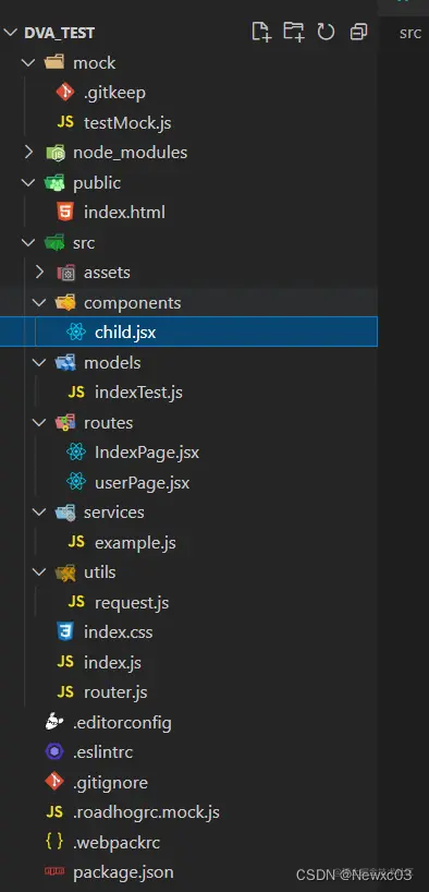 │ └── example.js // model example, dva的模型是一个集合了redux中 reducer 和 store,异步action等的抽象概念。